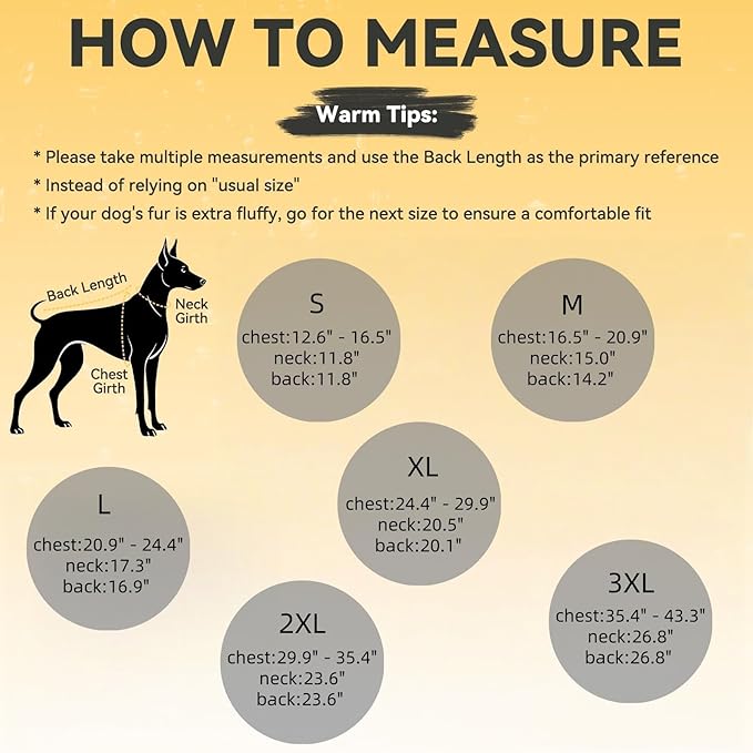 - Multiple Size for All Breed: Our dog rain jacket 6 sizes(S-3XL), suit all dog breeds, such as French Bulldogs, Beagles, German shepherds, etc. Please refer to our size chart, measure your dog's neck circumference, chest circumference, back length, and choose the most suitable size