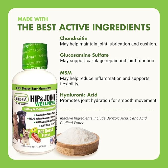 - Made in the USA with the HighestLevels of Trusted and Proven Ingredients: LiquidVet is crafted in our own USA facility using highquality ingredients from trusted sources. Pet owners can feel confident about giving their dogs safe, reliable support for joint health every day.