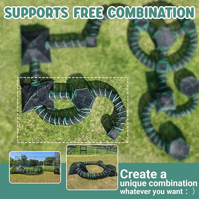 - 【50+ sq ft Multi-Zone Playground】 Massive combined space: 72"L dome tent as rest hub + 47.2" hexaganal playpen as lookout + 20" cube as hideout + 130" curved tunnels×2 + 47.2" straight tunnel—hosts 5+ pets freely.