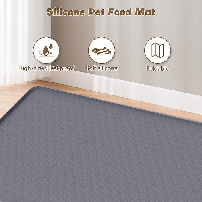 Cat Food Mat, 51.2" x 25.6" Extra Large Silicone Pet Feeding Mat with Raised Edge Pet Placemat for Food and Water Bowl Non-Slip, Easy to Clean, Floor Protection (Dark Grey)