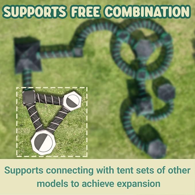 - 【Outdoor-Use Pet Adventure Zone】 Create a secure, multi-shape playground with 1x octagonal tent, 1x hexagonal tent, 1x cube tent, and 3x straight tunnels — perfect for pets to explore, hide, and sprint!