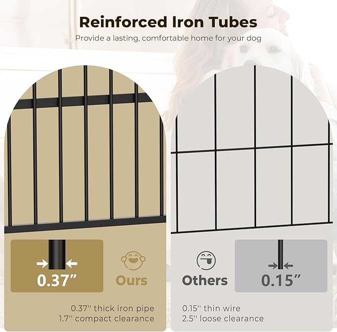- 【Spacious and Tall Design】Worried your dog can’t stand comfortably inside? This xxl indoor dog cage offers tall height and ample room, specially designed for large breeds; 360° visibility helps reduce anxiety and keeps your dog at ease