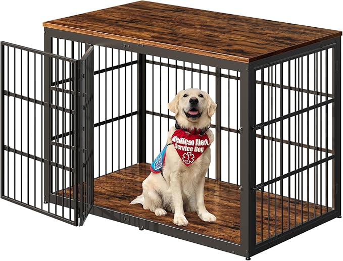 - 【Sturdy and Chew-Resistant】This tall dog crate furniture is made of premium particle board and iron pipe, which is stronger and more chewy; It will accompany your dog throughout the growing stages; It's an ideal gift for your dog