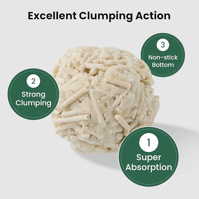 - ✨ Fast Clumping & Non-Stick — 1.5mm + 2mm mixed granules form firm clumps instantly, preventing sticking to the litter box bottom.