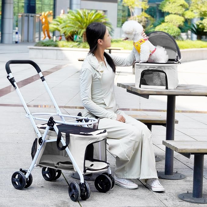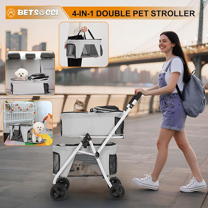 - 【Double Deckers for Twins】Our double pet stroller offers two detachable spacious seats, providing ample room for your pets to sit or lie down comfortably. Now you can take both your furry companions with you on every adventure. Let them share the excitement and create lasting memories together.
