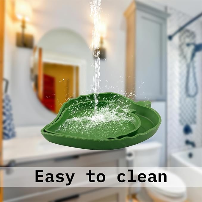- Unique shape design: Featuring beautiful leafwith realistic textures, these reptile food and water bowls add a decorative touch to your pet's habitat. It allows the pet to feel close to nature when eating.