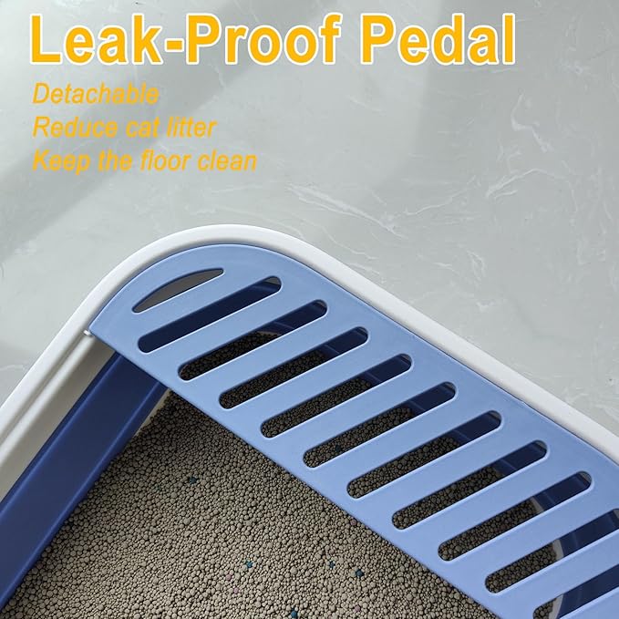 - Leak-proof pedal design: The hollow removable pedal on one side of the litter box can reduce the cat's PAWS to carry cat litter, keep the floor clean, and reduce the trouble of cleaning