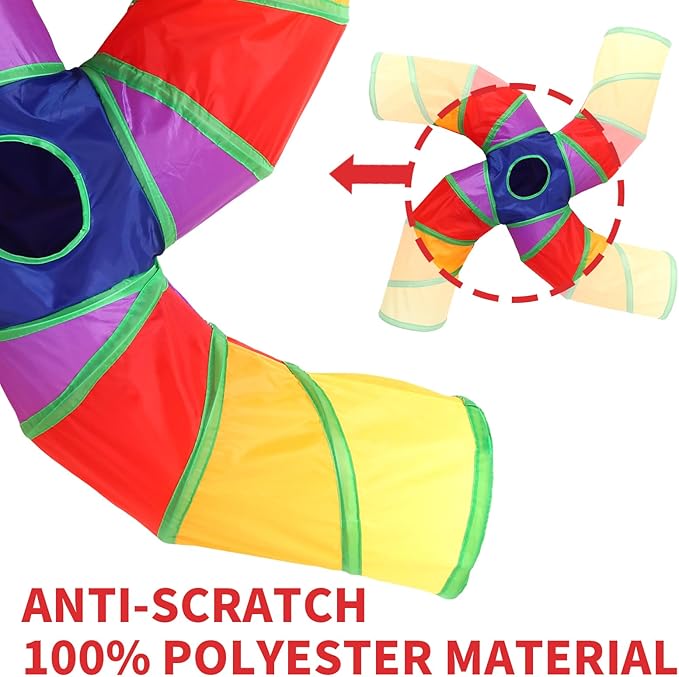 Pet Cat Tunnel, 4 Way Tunnels for Indoor Cats, Collapsible Pet Tunnel for Kitten, Puppy, Rabbit, 25cm-Wide Tunnels, Durable & Breathable, with Peek Hole Toy Ball
