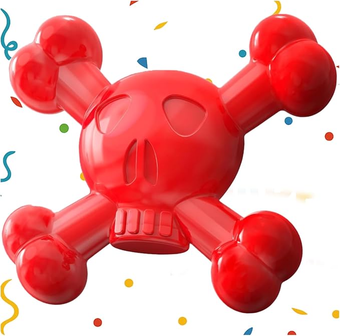 • Ideal for Puppy Teething and Chew Training: Perfect for puppy teething, this chew toy satisfies natural chewing instincts while easing teething discomfort. A great choice for chew training during a dog’s early growth stages. Made from tough nylon, this skull chew toy is as indestructible as a dog bone. It doubles as a dental bone for dogs,Perfect for puppy fans or dog chew bones lovers, its textured design massages gums and helps keep teeth clean during play. cleaning teeth and massaging gums with every bite, making it a great addition to any puppy supplies collection.