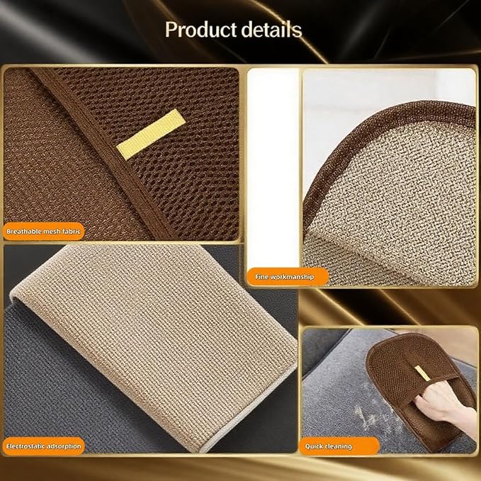 2Pcs Pet Hair Removal Gloves for Dogs and Cats, 2025 Upgraded Electrostatic Magic Hair Remover Glove,Reusable for Couch, Car Seat, Clothing, Carpet, Furniture & Bed Sheets(Brown)