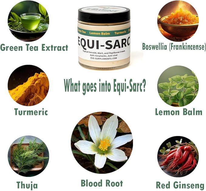 - Veterinary-Grade Sarcoid Treatment – Equi-SARC cream targets sarcoids, warts, and blemishes with a gentle topical formula.