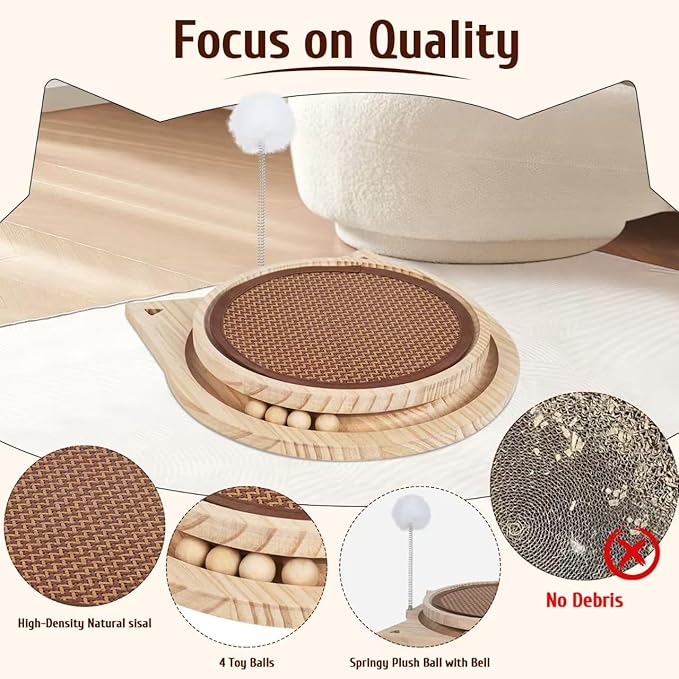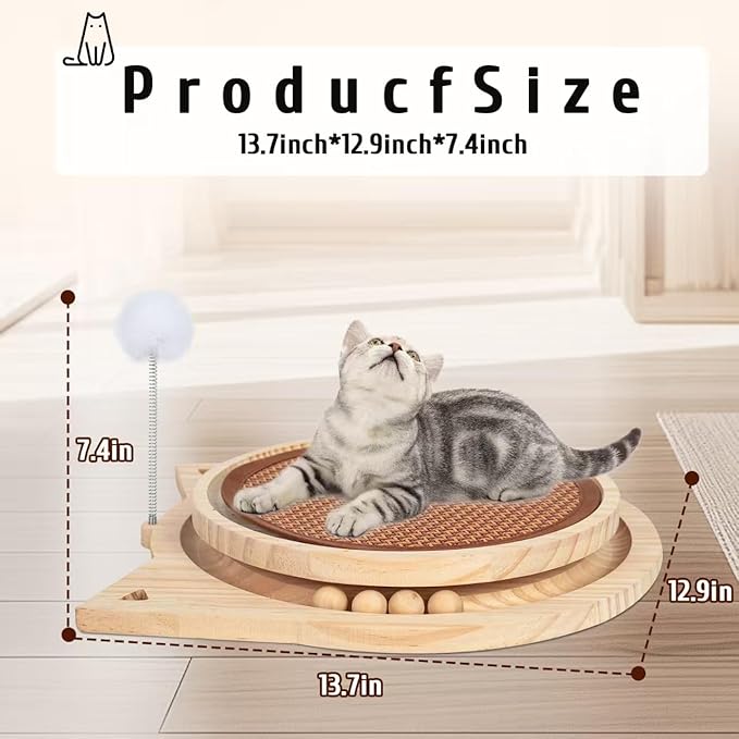 Cat Scratch Pad with Natural Sisal, Kitten Interactive Toy with Ball Track, Cat Wheels for Indoor Cats Toy for Relieves Stress, Cat Scratching Post for Bored