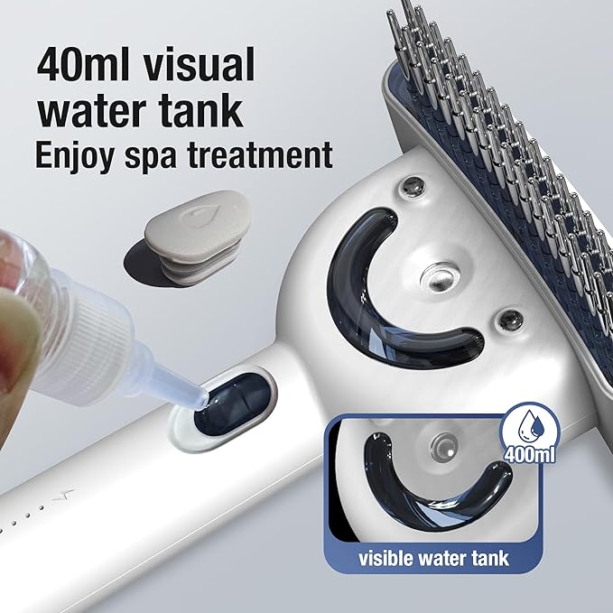 - ๐ซ๏ธ Dual-Sided Spray with Two Adjustable Modes ๐ซ๏ธ This pet grooming brush features a dual spray system with fine and strong mist options. It helps reduce static, control flyaway fur, and moisten the coat before groomingโperfect for dog shedding tools, deshedding brush, or grooming brush for dogs shedding.