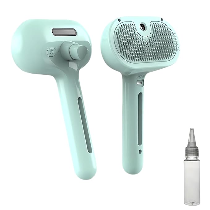 - 【Safe & Skin-Friendly Design – Ideal for Indoor Cats】 Crafted with rounded teeth and skin-safe materials, this steam cat brush gently massages while grooming. The ergonomic handle ensures a comfortable grip, and the low-noise design helps keep nervous pets calm. Perfect for cat hair brush for indoor cats and kittens alike.