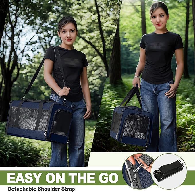 - Stress-Free Travel Ready Bag - Adjustable, detachable shoulder strap allows for hands-free carrying for doggies during airports trips or vet visits. Collapsible case can be stored flat for convenient storage