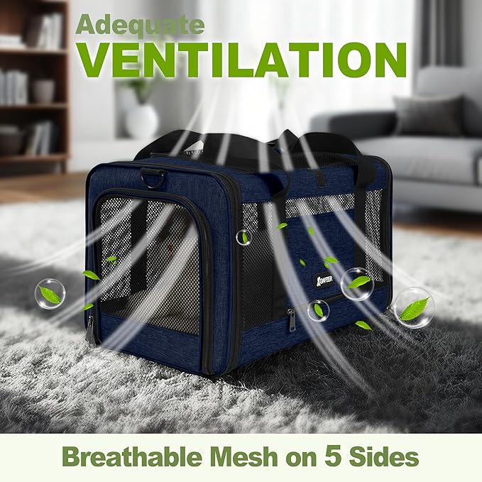 Cat Carrier 18x11x11 United Airline Approved, Top Loader Heavy Duty Softshell Pet Flying Bag 18lbs, Small Dog Chihuahua Crate 5-10 Pounds, Kitty Transport Kennel, Miniature Poodle Case Navy