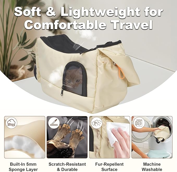 - [Ergonomic & Comfortable Design] The Furtent cat sling carrier features a wide, adjustable shoulder strap with soft sponge padding to reduce pressure on your shoulders and back. The soft inner lining and sponge-filled body offer extra comfort for your pet as well. Ideal for short travel like vet visits, coffee runs, quick errands, or neighborhood walks, it keeps you both supported—unlike stiff slings that dig into your skin or collapse easily.