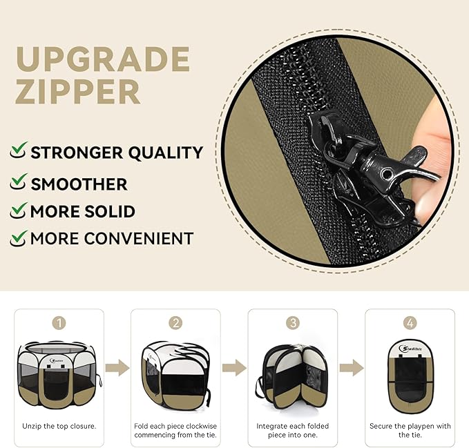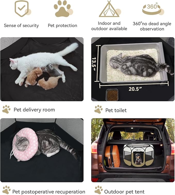 - 【No Assembly required】Opening the dog pen takes only a few seconds, is lightweight, strong, and does not require assembly. When not in use, it can be folded into the tote bag provided by us, which takes up minimal space and is easy to carry and store. Spacious interior Spaces allow your pet to play, sleep, hide or isolate. Perfect for indoors, lawns, beaches, parks, Tours, camping and more!