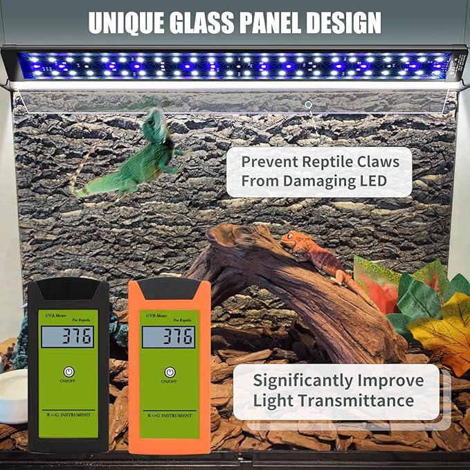 - 🦎【Important Note】① For optimal accuracy, please use professional equipment to monitor ideal output levels, UVB card results are not accurate. ② The LED light emits cool white light and does not generate physical heat. ③ We expert team provide 24/7 service, if you have any questions or need help, please feel free to contact us.