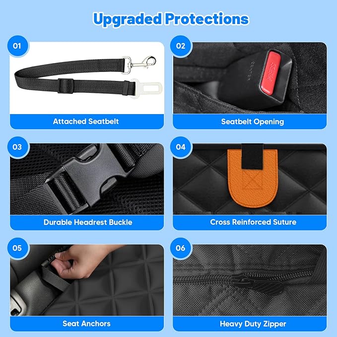- 【100% Waterproof, Easy Cleaning&Anti-Scratching】No need to worry about your dog's hair, slobber and claws any more. This dog seat cover features durable 600D Oxford fabric and waterproof layer, which keeps your backseat tidier and resist tears, scratches, and stains. Easy to wipe clean or machine wash—it's the ultimate low-maintenance solution for dog parents who love to explore.