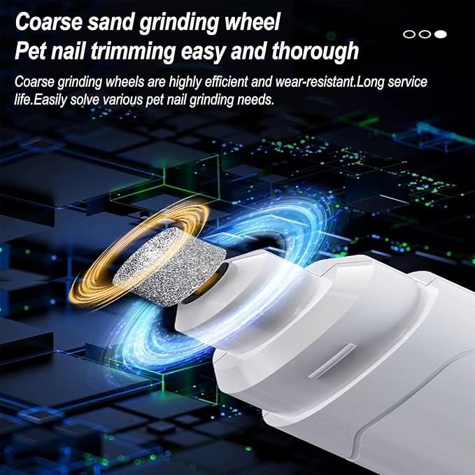 - 【Low-Noise Dog Nail Grinder】Operates under 40dB, designed for low vibrations; stress-free grooming experience for sensitive pets.