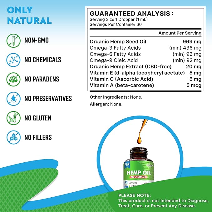 - Active Ingredients : Organic Hemp Seed Oil Omega-3 Fatty Acids Omega-6 Fatty Acids Omega-9 Oleic Acid Organic Hemp Extract (CBD-free) Vitamin E (d-alpha tocopheryl acetate) Vitamin C (Ascorbic Acid) Vitamin A (beta-carotene) Organic Hemp Seed Oil Omega-3 Fatty Acids Omega-6 Fatty Acids Omega-9 Oleic Acid Organic Hemp Extract (CBD-free) Vitamin E (d-alpha toc… See more