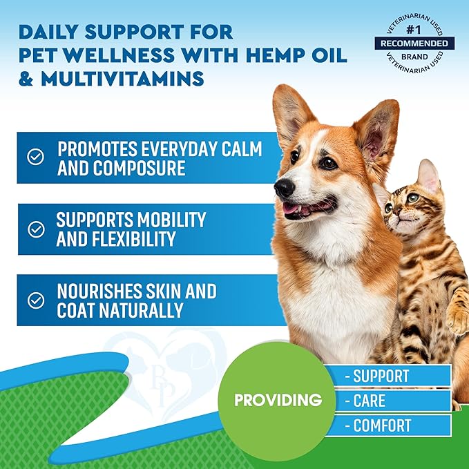 - ✅NATURAL MEDICINE WITH MULTIVITAMIN - Health with Vitamins A and E it promotes joint mobility, shiny coat, and relaxation for dogs and cats who fear loud noises or separation from owners.