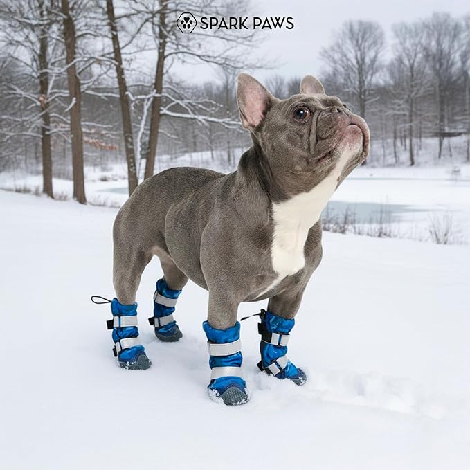 Spark Paws Dog Shoes, Waterproof Dog Boots for Medium to Large Dogs, Non Slip, Breathable Dog Booties and Paw Protectors - 4PCS Doggie Hiking Boots with Reflective Straps, Blue Camo, Size 3