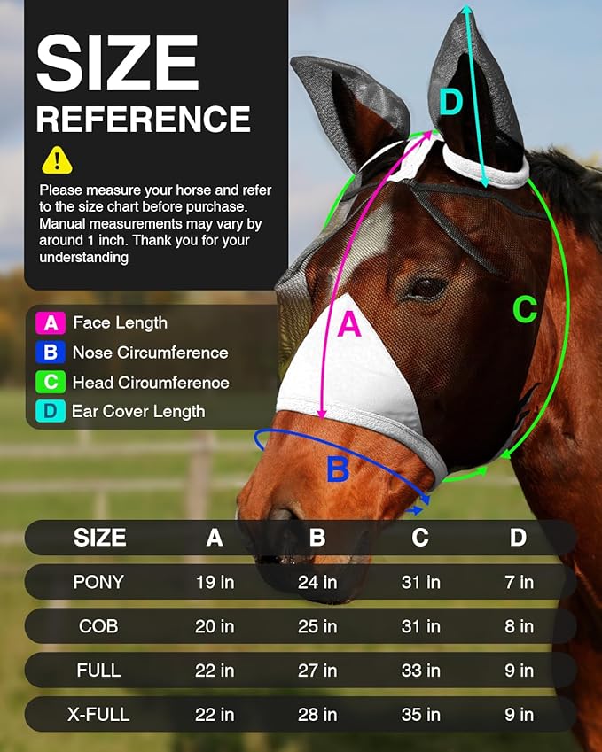 - FLY & UV BLOCK: The Hilltown fly mask shields your horse from biting insects and blocks over 60% of UV rays. With fewer bites and less sun stress, your horse can graze in comfort—while you enjoy peace of mind knowing they're protected