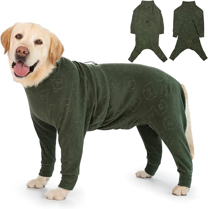 Dog Coats Autumn Winter Jumpsuit for Large Medium Dogs, Warmer Polar Fleece Dog Bodysuit Lightweight Pajamas, Pullover Stretchy Cold Weather Clothes (Dark Green, XL)