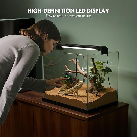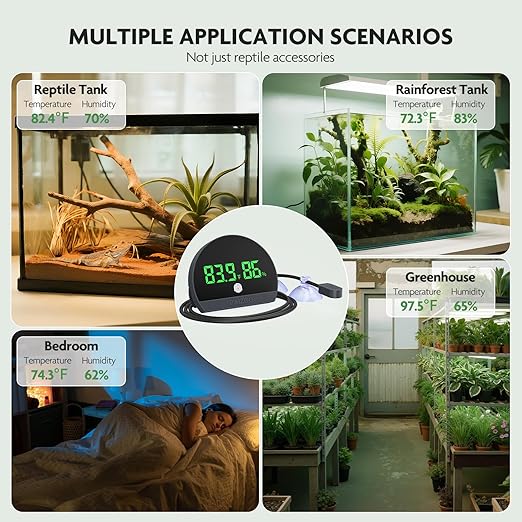 - LED High Definition Display: This digital thermo-hygrometer has an extra-large LED screen for instant, clearer than traditional LCD screen readings, no glare, precise temperature and humidity readings in your reptile habitat even in darkness