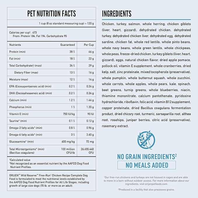 ORIJEN Wild Reserve Dry Dog Food Free-Run Chicken Recipe 20lb Bag