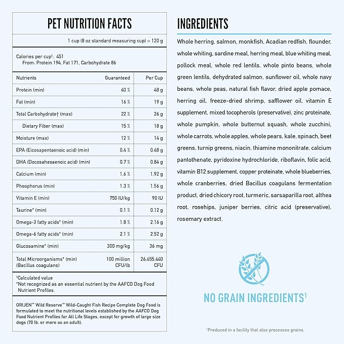 - One (1) 20lb bag of ORIJEN WILD RESERVE Dry Dog Food – Wild-Caught Fish recipe