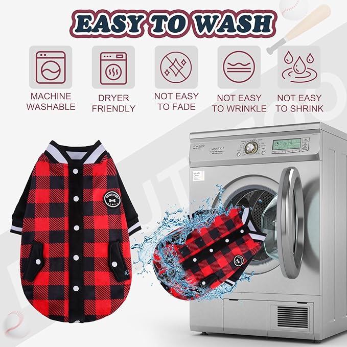- Classic Design : The dog coat is designed to look like a baseball uniform and comes in two colors: red and black plaid style and solid gray style, will make your dog stand out in a crowd. It also features a BEAUTYZOO custom leather tag, which are different from ordinary coats and look more advanced and cute.