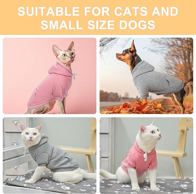 - Versatile Size only for Cats & Small Dog: This pet hoodie is expertly tailored for cats and small breed dogs, offering a stretchy yet snug fit. Comfortably fits kittens, puppies, and hairless pets, Ideal for Sphynx Cat Clothes, Devon Rex, Cornish Rex, Peterbald cats and Teacup Chihuahuas. Always refer to our size chart to choose the ideal cat outfit or small dog sweater