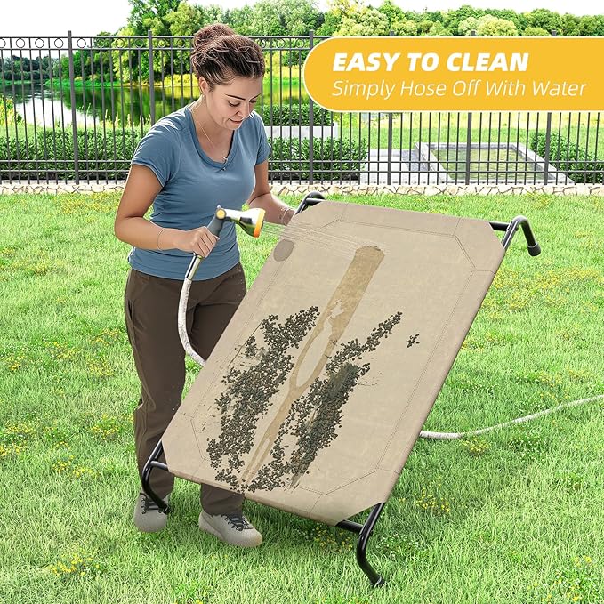 - 【USE INDOORS AND OUTDOORS】8-inch raised breathable mesh pet bed withstands the elements and can be used indoors and outdoors. Keep your dog dry and comfortable in the backyard, on the patio or porch, by the pool or while camping.
