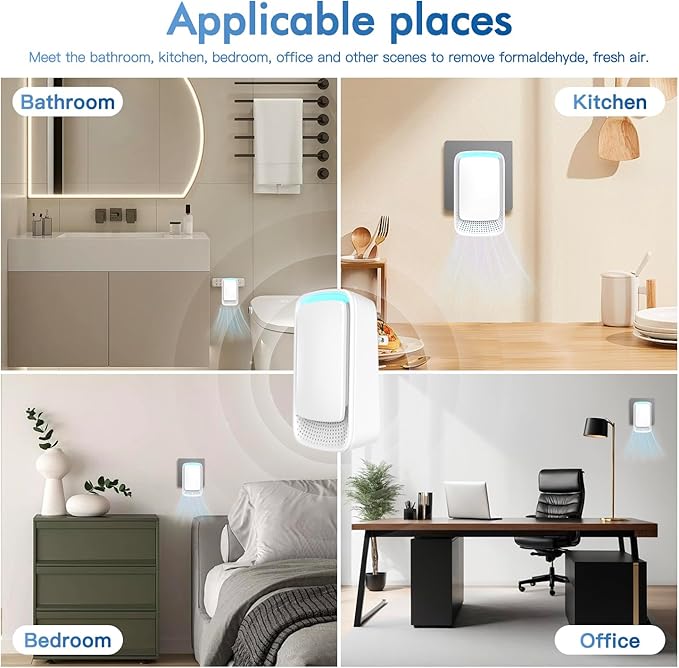 - 【Designed For Whole Home/Office Air Purification】 At only 2.4 inches wide and 4 inches long. The plug in air purifier is suitable for bedroom,bathroom,kitchen,living room,garage,basement,gym,hallways and office use. We recommend using at least one per bedroom, bathroom, dining room, living room, and kitchen to ensure best results. air ionizer, air ionizers for home, ionizer air purifier, air purifier,air fresheners for home