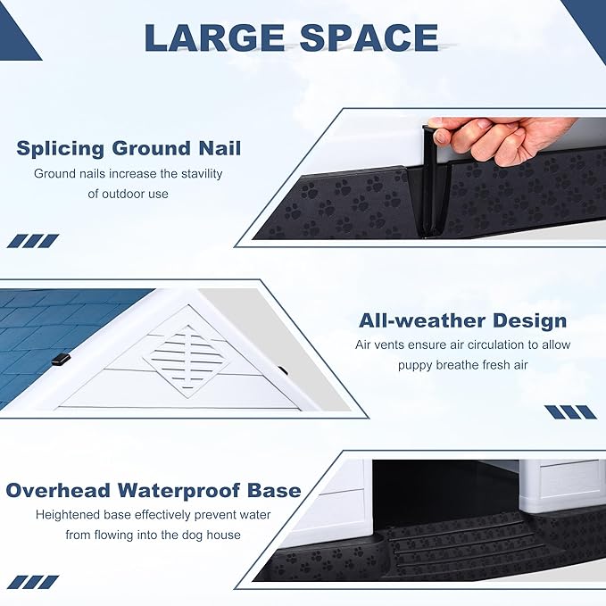 - 【Weather proof】Plastic dog houses can provide a safe home for pet dogs in stormy environments, so that your pets don't have to worry about wind and rain
