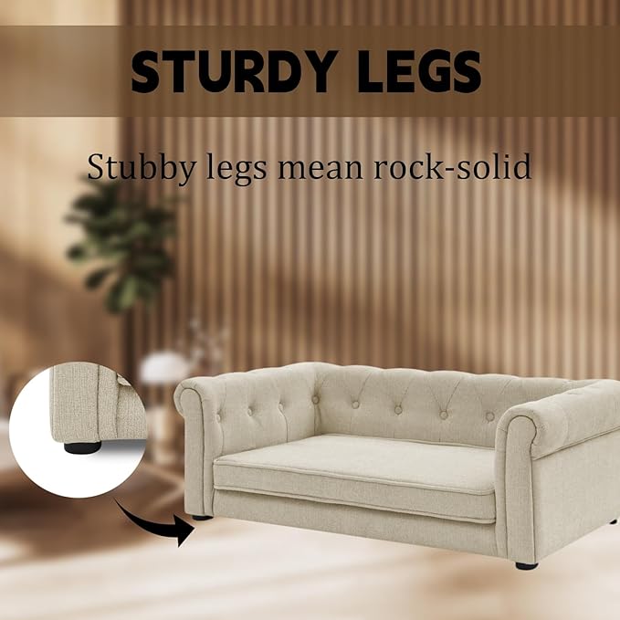 • 【FURNITURE-GRADE DESIGN】:Designed like human furniture, The pet couch features button-tufted backs, armrests, and a modern aesthetic that complements home decor. The elevated sofa gives pets a sense of security while promoting family bonding.