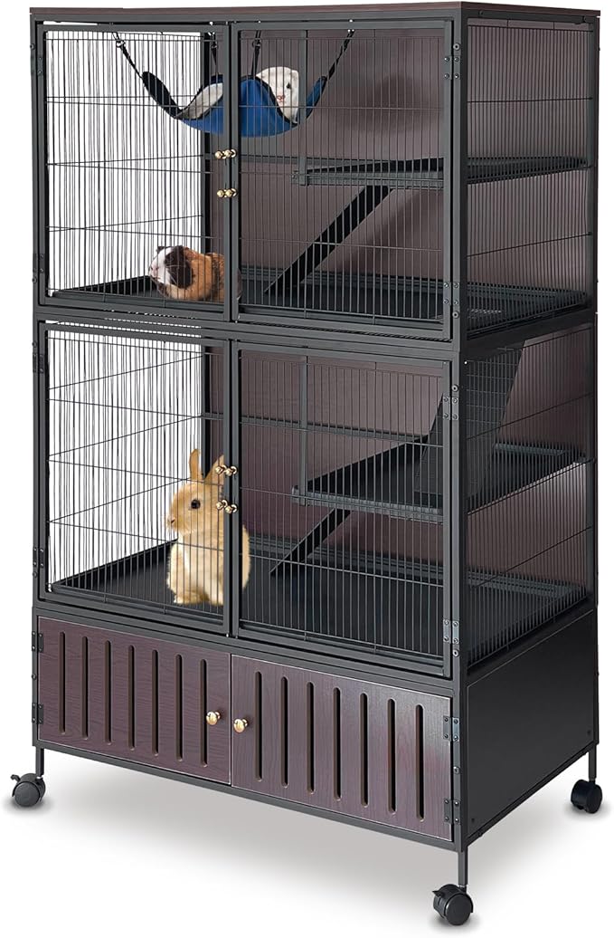 - Enhanced Durability & Stylish Design: The Premium Ferret Cage features a reinforced metal frame with 0.8mm thickened steel bars (3X stronger than standard cages) and natural New Zealand wood panels, providing industrial-grade security while seamlessly blending into home décor with its elegant caramel-brown finish.