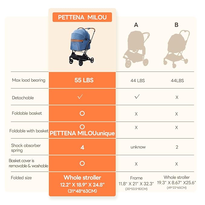 - ๐ใMax Load Capacity 55 Lbs, Large Interior SpaceใThe PETTENA pet stroller MILOU has a load-bearing capacity of 55lb(25kg) and a spacious interior, making it ideal for owners of small-sized dog, such as French Bulldog, Poodle, Dachshund, Beagle, etc.