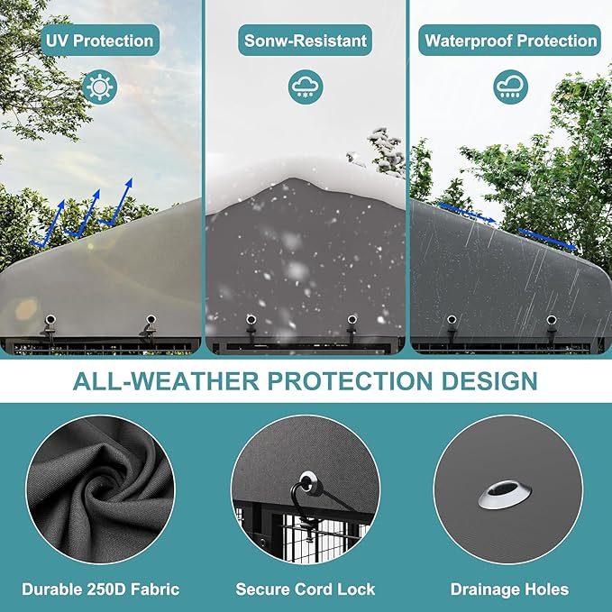- Weatherproof Canopy Roof:Equipped with a sloped, UV-resistant and waterproof cover, the roof keeps your pets cool and dry in sun or rain. Designed to last through seasons, this kennel offers reliable all-weather shelter for your dog.